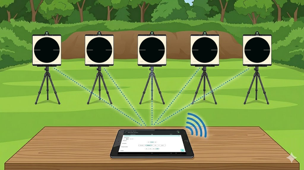 Lancer une même série ou un match sur plusieurs pas de tir à partir d'un seul appareil (idéal pour les challenges ou l'entraînement de groupe).