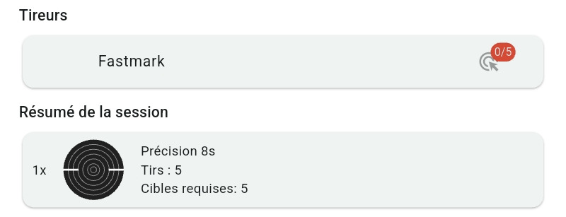 Le compte superviseur centralise les tirs de tous les participants. Vous pouvez isoler les scores d'un tireur spécifique en cliquant sur l'icône "œil" de sa carte de score.