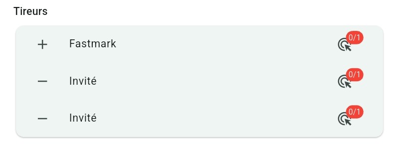Ajouter des tireurs : Utilisez le bouton "+" à gauche du premier tireur (et "-" pour en retirer).