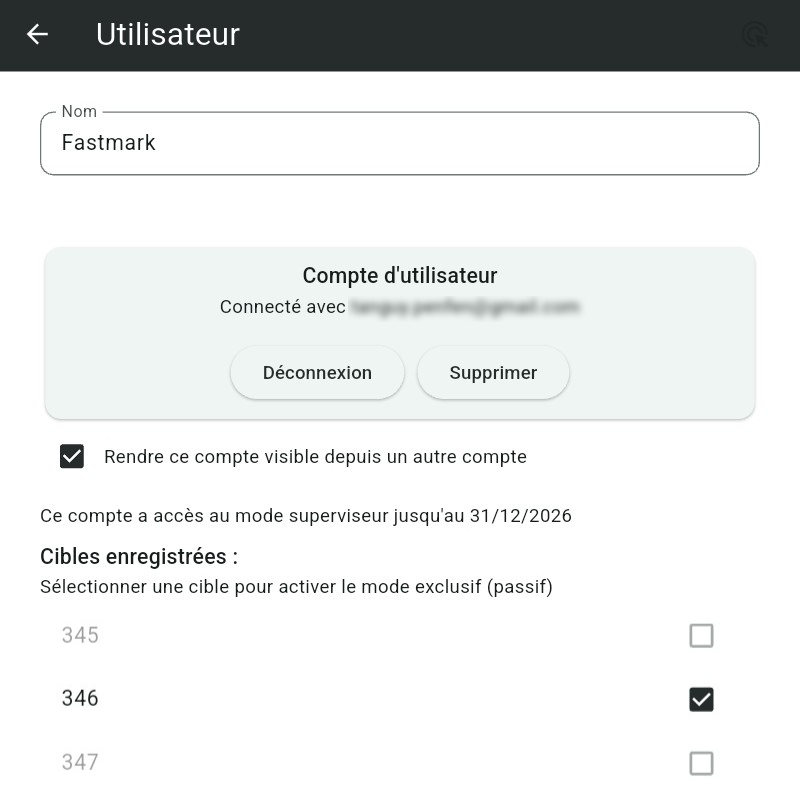 Ces fonctionnalités sont réservées aux comptes Fastmark (créés dans l'application) qui remplissent les conditions suivantes :